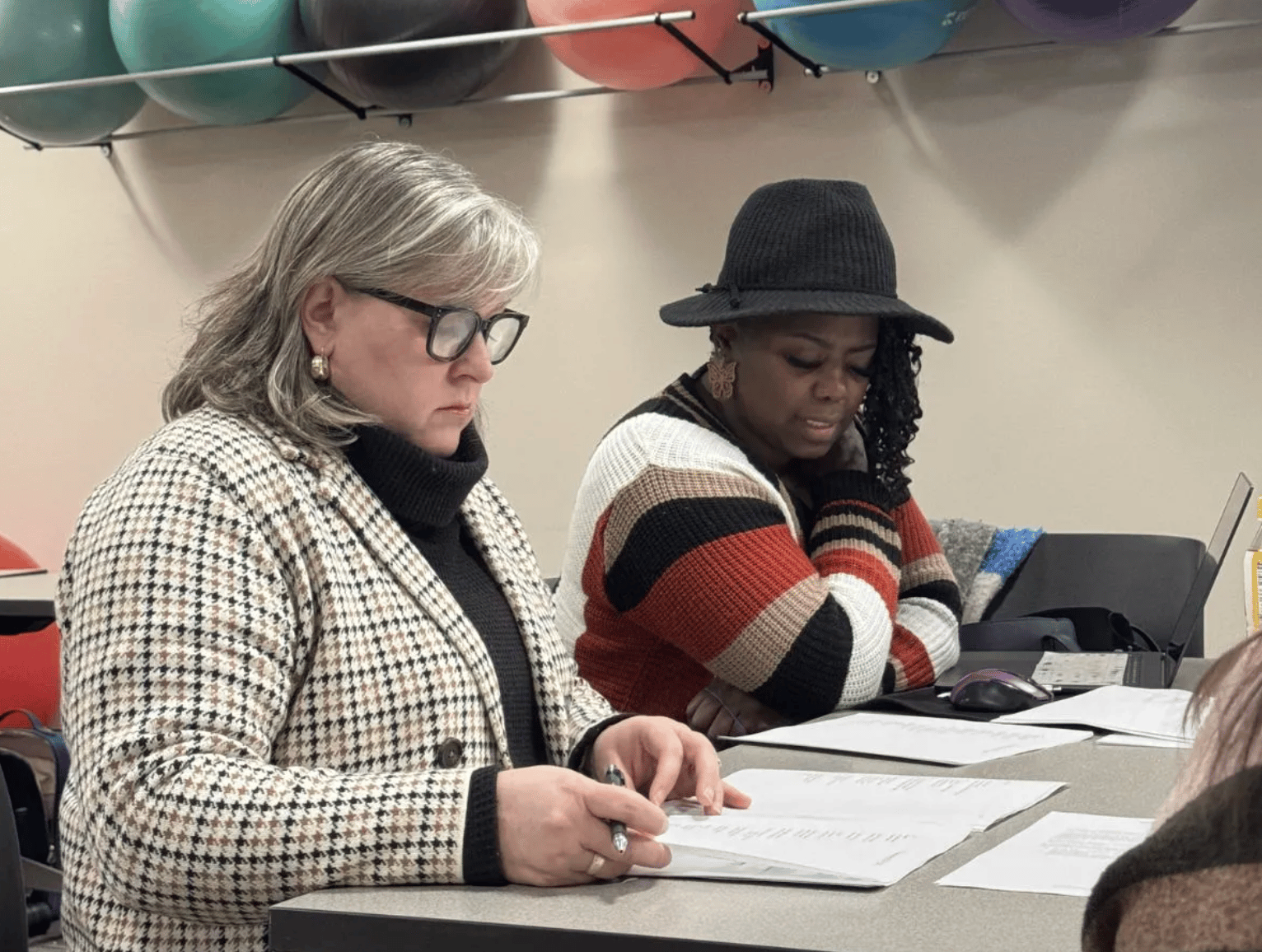 Tracy Manning and Alicia Sims rehearse the play "Re-Entry" Feb. 24 at the IU Health Sciences Building in Indianapolis. Credit: Provided photo/Summit Performance Indianapolis