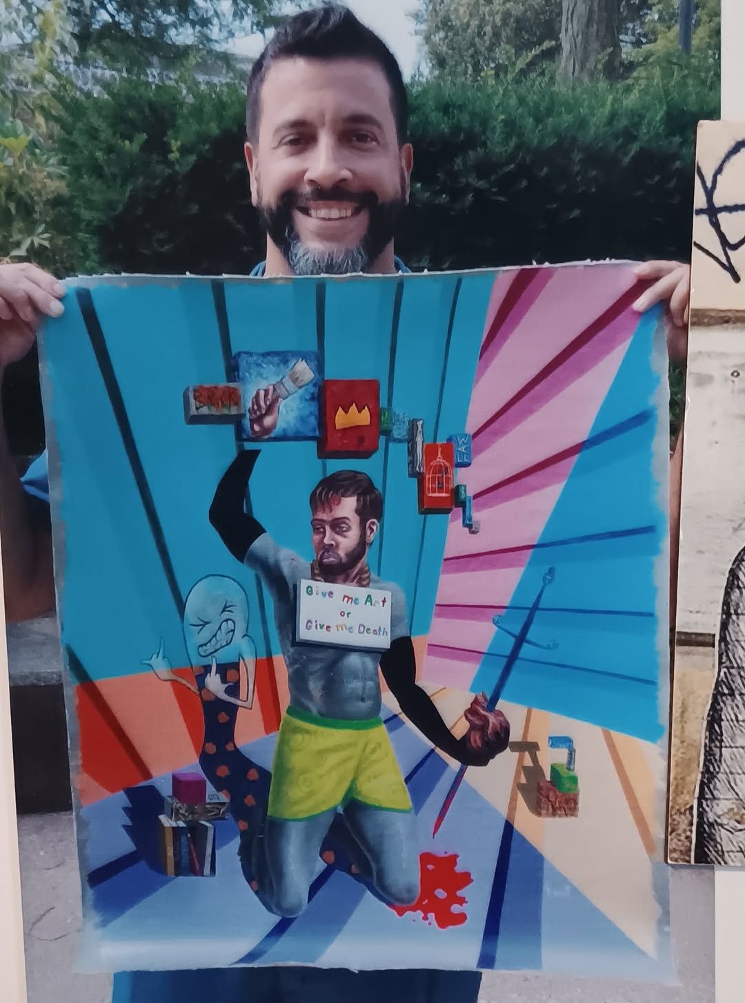 Christopher Levitt holds one of his paintings. Photo courtesy of Christopher Levitt.